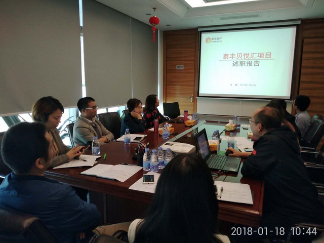 2018年1月18日星期四上午10:00,泰豐貝悅匯項(xiàng)目2017年度年終述職會(huì)議在集團(tuán)小會(huì)議室舉行,貝悅匯項(xiàng)目總李谷春、人力資源朱瓊經(jīng)理、工程經(jīng)理袁強(qiáng)立、建筑設(shè)計(jì)經(jīng)理羅志超、開發(fā)報(bào)建經(jīng)理劉寧、項(xiàng)目成本經(jīng)理周波、成本副經(jīng)理陳堅(jiān)、以及項(xiàng)目相關(guān)人員出席并參加了此次會(huì)議。