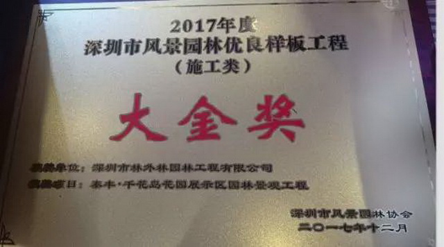 熱烈慶?!疤┴S·千花島”又榮獲大獎(jiǎng)---深圳風(fēng)景園林類(lèi)優(yōu)良樣板工程(施工類(lèi))大金獎(jiǎng)!泰豐出品,必屬精品!