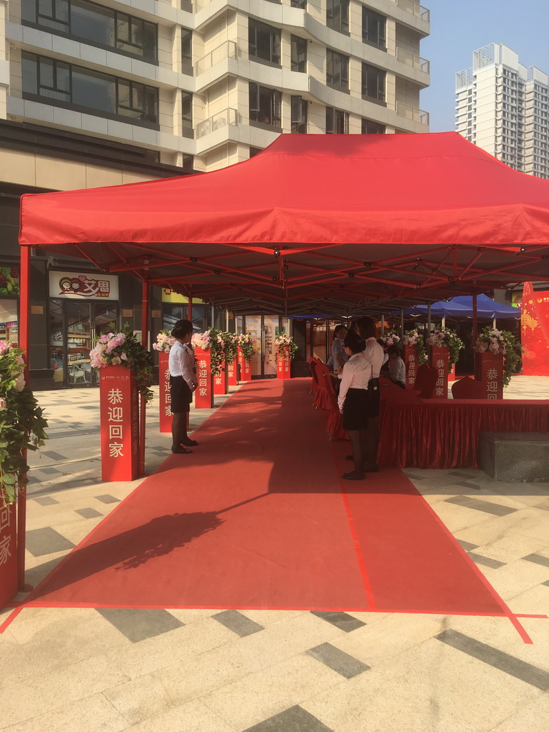 交房現(xiàn)場,一面面鮮艷的旗子整齊的排列在道路兩旁,現(xiàn)場秩序維護(hù)員忙著引導(dǎo)來往的車輛和行人。走進(jìn)小區(qū)立刻被一種溫馨喜悅的氣氛包圍,“恭迎回家”等此類溫情標(biāo)語隨處可見,附上輕快歡心的音樂,現(xiàn)在氛圍變得輕松愉悅起來。這,正是歸家才有的心情。