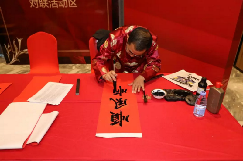 現(xiàn)場(chǎng)寫(xiě)對(duì)聯(lián)贈(zèng)予業(yè)主
