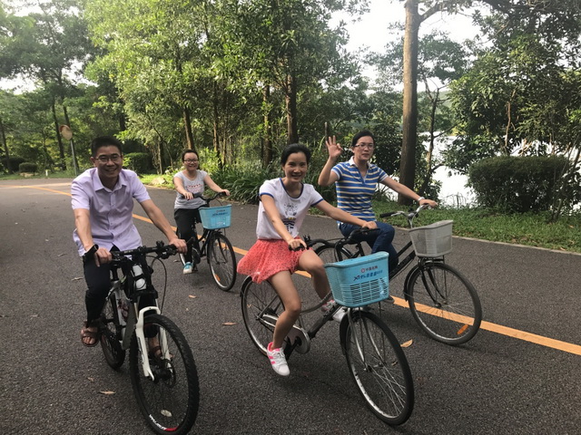 當天下午華威一行自駕出發(fā),到達紅花湖綠蔭騎行道后,各自挑選了騎行裝備,開始騎行。本次騎行為環(huán)湖18公里,途中大家一邊欣賞風(fēng)景,一邊流著汗賣力踏著單車,興致盎然,并不感到疲倦,反而更散發(fā)出奮發(fā)的朝氣。到達18KM目的地后,湖面佛過的微風(fēng)撲面而來,令人心曠神怡,更感受到運動后大汗淋漓的快樂。