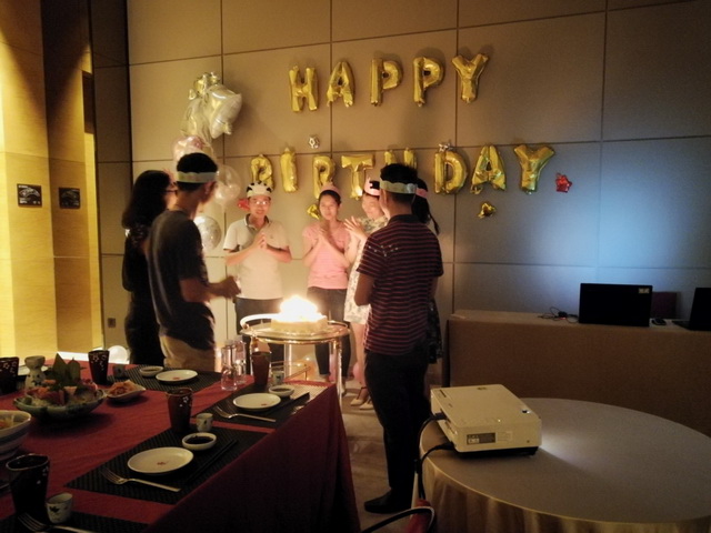 當(dāng)"祝你生日快樂……"這首熟悉而美妙的旋律響起,全場燈光熄滅,伴隨著熟悉的音樂款款而來,大家齊唱生日歌,壽星們閉著雙眼,許下了生日愿望。
