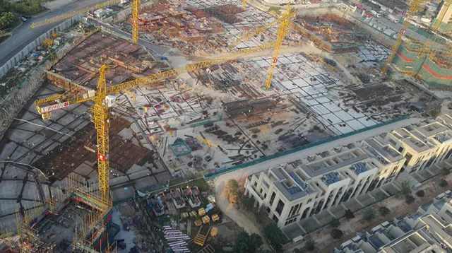 施工現(xiàn)場(chǎng)已大面鋪開,工地是一片忙碌的景象。