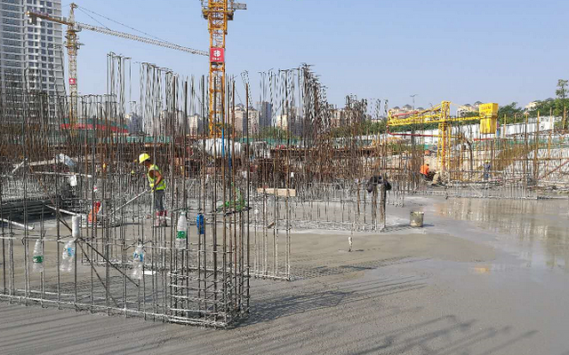 基礎(chǔ)鋼筋綁扎如火如荼施工中,工人工作熱情飽滿