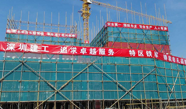 在趕工的同時(shí)絕不放松對(duì)安全文明施工的要求,布置規(guī)范的外立面給人嚴(yán)謹(jǐn)有序的感覺。